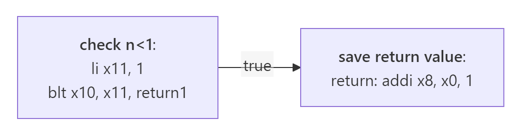 Here, we are storing our parameter n in x10, and x8 is a saved argument. Then let’s go to the next logic.